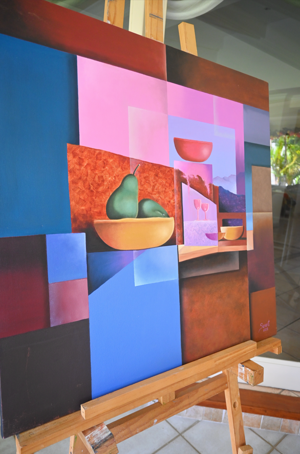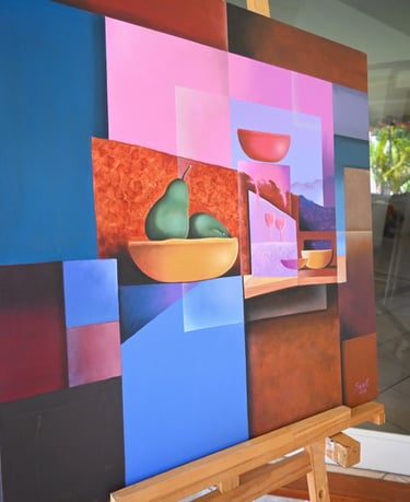 Comenzó a pintar como un refugio frente a la soledad que llegó cuando sus hijas crecieron y partieron, encontrando en la pintura un espacio de expresión, compañía y pasión. Su trabajo se mueve entre el realismo, que aborda con sensibilidad y detalle, y el arte abstracto, donde disfruta explorar el color, las formas y la mezcla de técnicas en óleo y acrílico.